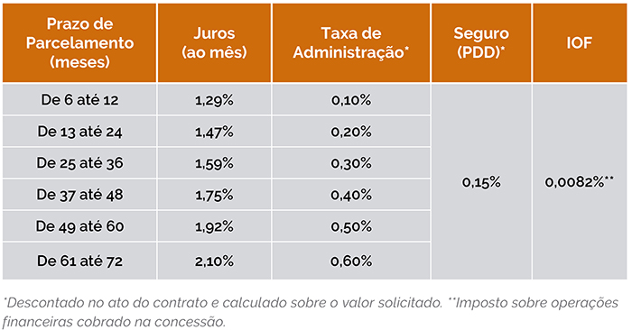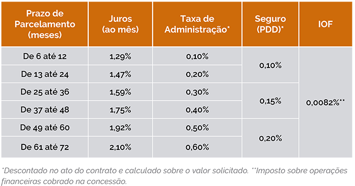 Participante assistido: Em o prazo mínimo de 6 e máximo de 48 parcelas mensais e consecutivas para quitar o empréstimo.